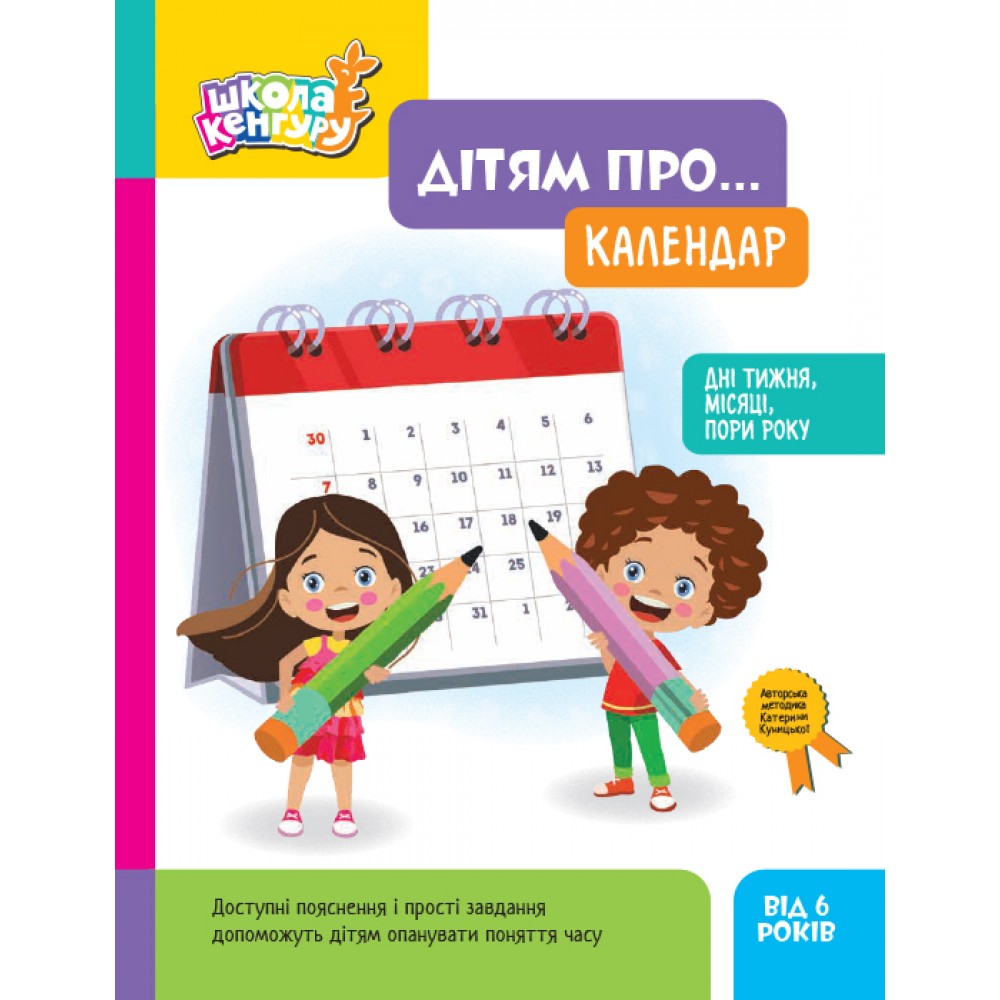 Робочі зошити серії «Школа Кенгуру. Дітям про…» містять доступні пояснення і прості завдання, які допоможуть дітям легко і швидко опанувати поняття часу, познайомитися з календарем. Отже, вони стануть у пригоді і школярам, і вчителям, і батькам.